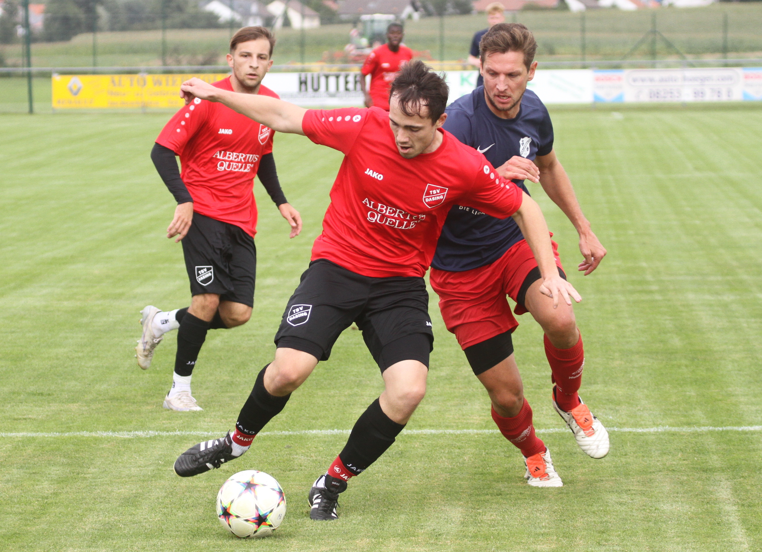 Mit einem Auswärtserfolg startete der TSV Dasing in die neue Spielrunde. Die Elf um Spielertrainer Michael Guggumos und Johannes Rummel kehrten mit einem verdienten 3:1-Sieg vom TSV Hollenbach II nach Hause. Vor dem Seitenwechsel erzielte Neuzugang Moritz Buchhart die beiden Treffer zum 2:0-Pausenführung. Nach dem WEchsel unter der aufmerksamen Leitung des Münchner Unparteiischen Tim Pollwein verkürzte die Heimelf nach einem Freistosstreffer von Spielertrainer Kevin Hauke auf 1:2. TSV-Heimkehrer Christoph Schulz machte wenig später den wichtigen Auftaktsieg mit einem feinen Schlenzer in Torkreuz zum 3:1-Endstand perfekt. (.…. Bilder vom Spiel) – Dagegen erlebte die zweite Garnitur ein gewaltiges Gewitter zum Auftakt – beim sV Hörzhausen hagelte es eine blamage 1:10 Auswärtspleite – lediglich Florian Higl konnte kurzfristig zum zwischenzeitlichen 1:1 ausgleichen – danach stand das Team komplett neben den Schuhen.