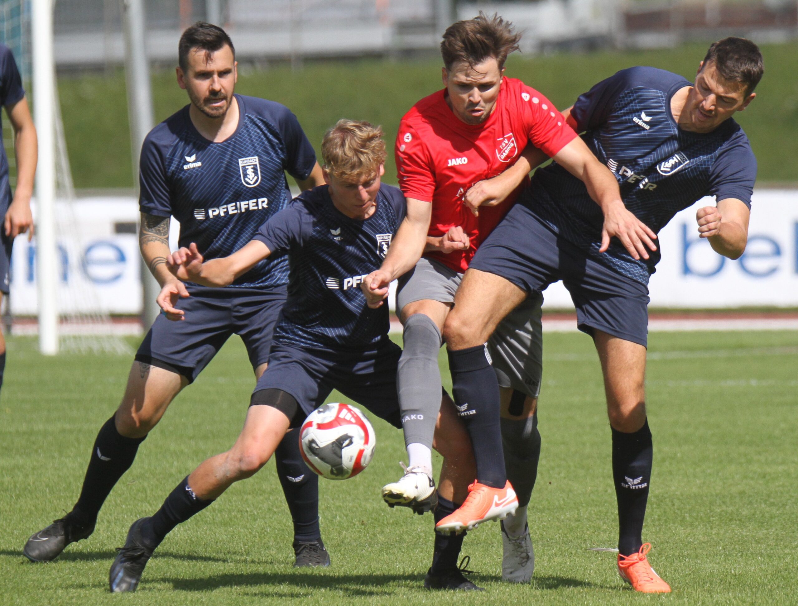 Nicht punkten konnte der TSV Dasing im ersten Heimspiel der neuen Saison. Gegen den TSV Kühbach um Coach Emanuel Miok musste die Guggumos/Rummel-Elf einen empfindliche 1:2-Heimpleite hinnehmen. Von einem flotten Spiel auf der Dasinger Sportanlage berichtete Stadionsprecher Bernhard Lechner und TSV-Spielertrainer Michael Guggumos sprach von einer völlig unnötigen Heimniederlage. „Das ist sehr ärgerlich und deshalb bin ich auch enttäuscht, da einfach mehr drin gewesen wäre.“ Mitten in die Dasinger Anfangsdrangphase unterstrich Gästetorjäger Pietruska seine Qualität und sorgte nach einem Konter für den Führungstreffer. Den Schupser gegen Marcel Rüffler ahndete der ansonsten aufmerksame Unparteiische Klinge nicht, und somit hatte der 34jährige frei Bahn zur Fünhrung. Dasing vergab danach aber eine Reihe von Chancen durch Moritz Buchhart und Johannes Rummel. „Das war wieder unser Manko“ so Guggumos, der selbst zwei dicke Dinger versiebte. Unmittelbar nach der Pause jubelten die Dasinger, nach dem Philip Boser den Freisotss von Buchhart ins eigene tor zu ,Ausgleich verlängerte – Kühbach aber nutzte dann aber erneut einen Konter und Alexander Hofmann konnte aus drei Meter zum 2:1-Siegtreffer per Kopfball treffen. (…..Bilder). Die zweite Mannschaft sammelte im Lokalderby beim BC Adelzhausen II die ersten Punkte ein. 2:2 stand es nach packenden neunzig Spielminuten. Buba Saho und Valentin Gilg erzielten die Treffer in der munteren Partie.