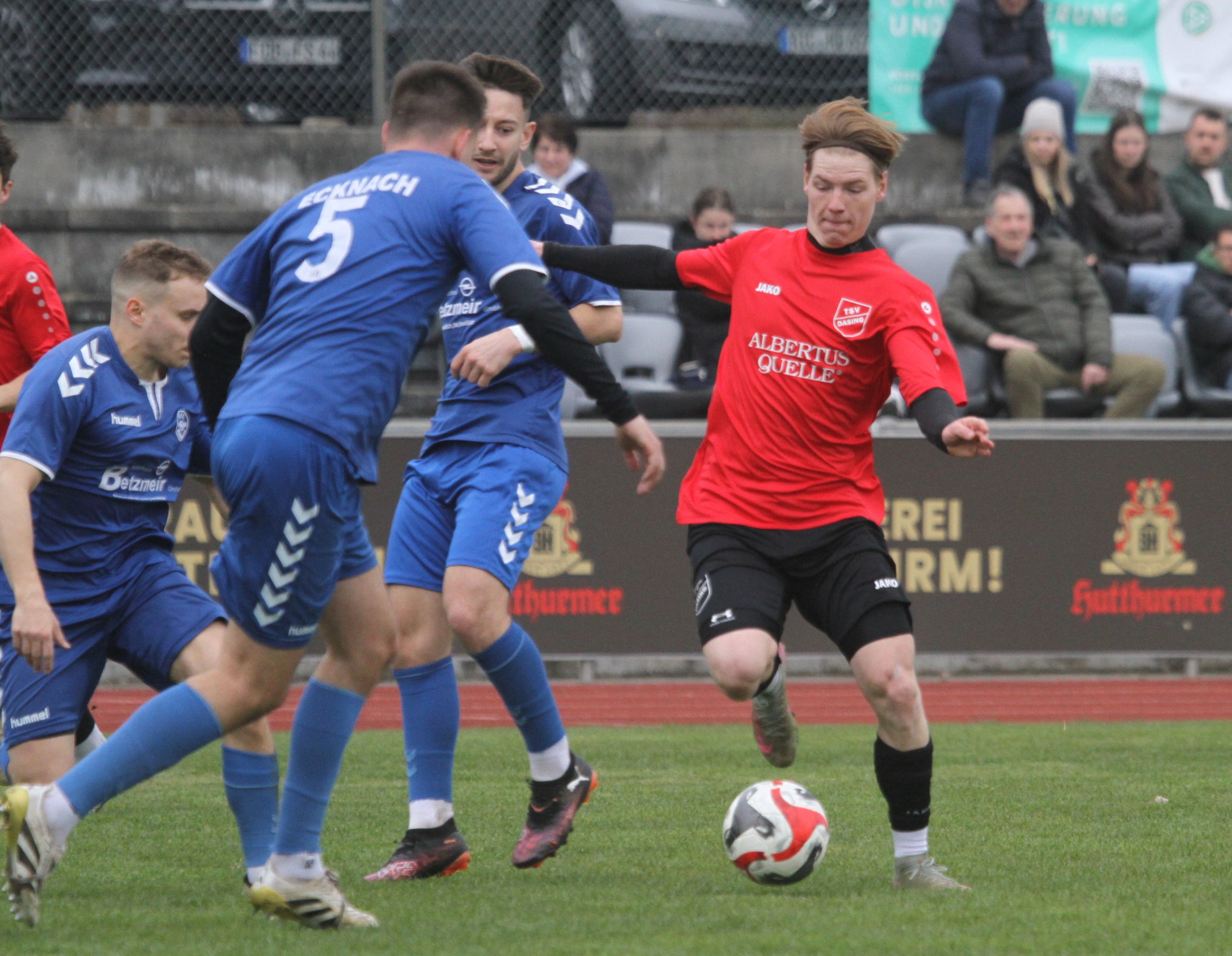 Mit einem gerechten 1:1 endete das Spitzenspiel auf der heimischen Sportanlage gegen die Zweitvertretung des Bezirksligisten VfL Ecknach. „Wir haben leider heute nicht konsequent unseren Spielaufbau vorgetragen und zu ungenau die Zuspiele vorgenommen“ so Spielertrainer Michael Guggumos. Die Gäste übten vor allem im ersten Abschnitt mit ihrem Umschaltspiel für gefährliche Nadelstiche. Florian Farda gelang nach einer Freistossvorlage von Daniel Schimpf nicht unverdient der Führungstreffer. Zuvor hatte Keeper Greppmair bereits zweimal sich kräftig strecken müssen, um einen Gegentreffer zu verhindern. Kurz nach dem Rückstand konnte dann aber Moritz Biuchhart bereits für den Endstands sorgen. Zunächst scheiterte er mit einem Strafstoss an Keeper Andreas Egger – den Nachschuss dürckte Buchhart dann zum 1:1 über die Torlinie. zuvor wurde Guggumos von Mair und Egen hart an der Strafraumgrenze in die Zange genommen und der Unparteiische Jürgen Bohmann zeigte auf den Punkt. „Letztlich können bestimmt beide mit dieser Punkteteilung zufrieden sein“ so VfL-Coach Philipp Heinrichs. Zuvor musste sich die zweite Garnitur gegen den TSV Schiltberg mit 1:5 geschlagen geben. Trotz der letztlich klaren Niederlage kämpfte die durch Krankheit und Verletzung geplagte Dasinger Elf aufopferungsvoll und konnte die Partie bis zur 75. Minute spannend halten. Maximilien Wiesner erzielte sogar den Führungstreffer und dann hatte der reaktiverte Simon Gilg die Chance zum Ausgleich – scheiterte aber an Keeper Kai Vollbracht mit einem Strafstoss. (..Bilder vom Spiel TSV Dasing II gegen Schiltberg – … Bilder vom Spiel TSV Dasing gegen VfL Ecknach II)