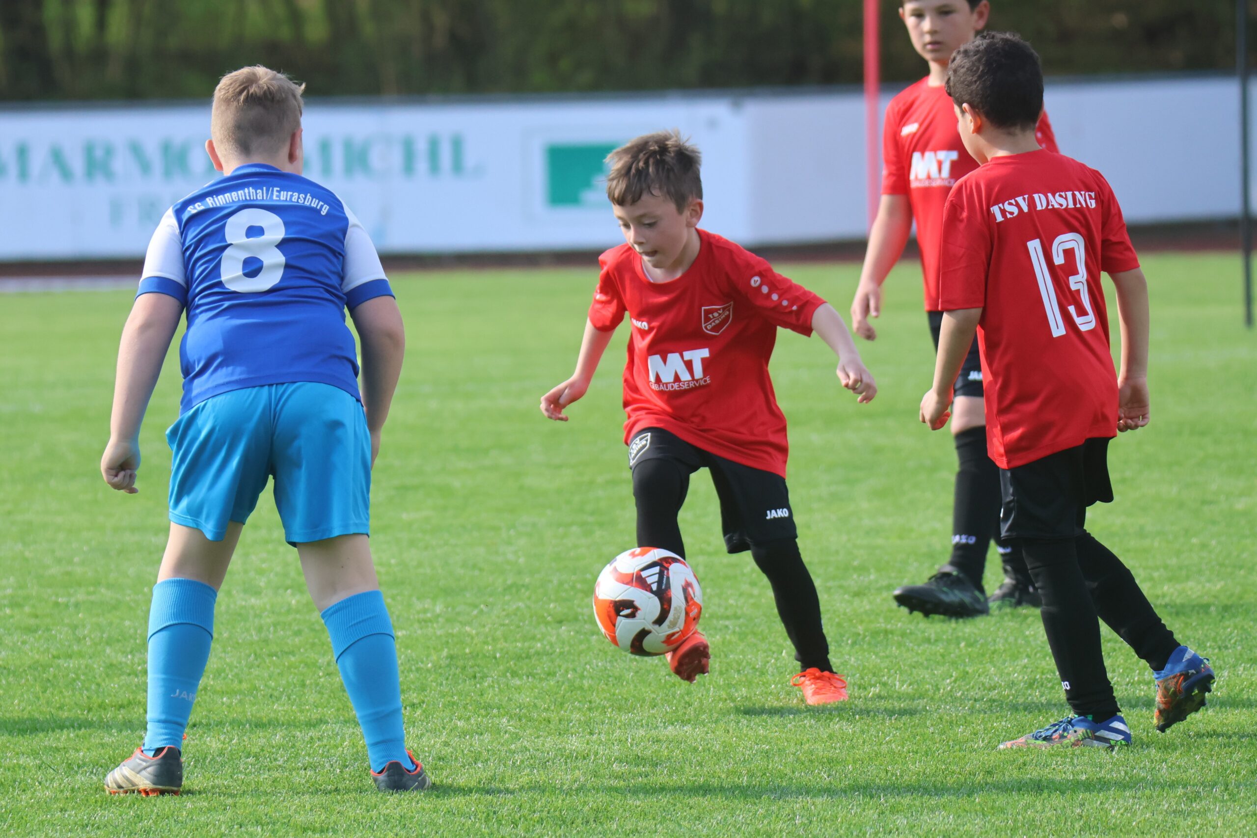 Im Mittelpunkt des Nachwuchsfußball stand die Sportanlage am Wochenende. Die E2 eröffneten mit einem 4:4 gegen den TSV Weilach (Bilder E2_Junioren) und die E1 konnte anschließend den BC Aichach mit 11:0 gewinnen. (Bilder E1-Junioren) Die C2 gestaltete ihr Pflichtspiel gegen den SV Mering C2 mit einem 5:1-Sieg. 3:3 trennte sich die D-Jugend im Derby gegen die SG Sielenbach/Adelzhausen. Simon Ullrich, Avin Philip und Leon Hahn drehten zunächst den 0:2 Rückstand (Tore Fabian Widmann) in eine 3:2 Führung, ehe Dominik Loder kurz vor dem Ende ausglich. (Bilder D-Junioren) Die B-Jugend setzte sich gege die SG Obergriesbach/Griesbeckerzell/Mauerbach/Klingen mit 4:2 durch. Raphael Egg unterlief zunächst ein Eigentor und Daniel Andrishko erhöhte wenig später auf 2:0 für die Dasinger. Jonas Faltus verkürzte für die Gäste, ehe Fabian Hiehler und Claudiu Gligor die Grosche/Pauer-Elf mit 4:1 davon ziehen liesen. Für den Enstand sorgte Mahdi Rezai zum 4:2. (Bilder B-Junioren) Viel Begeisterung im Spiel des F-Junioren-Festival sah man den jungen Nachwuchsfußballern bei den beiden Turnieren am Samstagnachmittag an. Von 13 Uhr bis knapp 18 Uhr rollte der Ball und die jungen Fußballer konnten zahlreiche Tore bejubeln. (… Bilder vom Festival 1 ..….Festival 2)